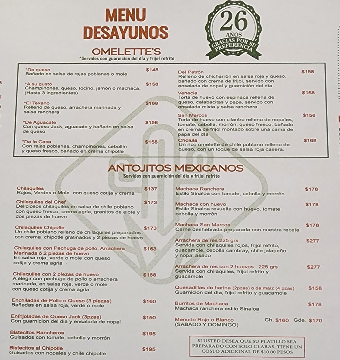 Welcome to Restaurant San Marcos, a gem nestled in the vibrant Zona Urbana Rio Tijuana. Known for its exceptional food and efficient service, this restaurant offers a delightful dining experience that doesn't break the bank. The menu is thoughtfully crafted, featuring beloved dishes that make it a local favorite.
